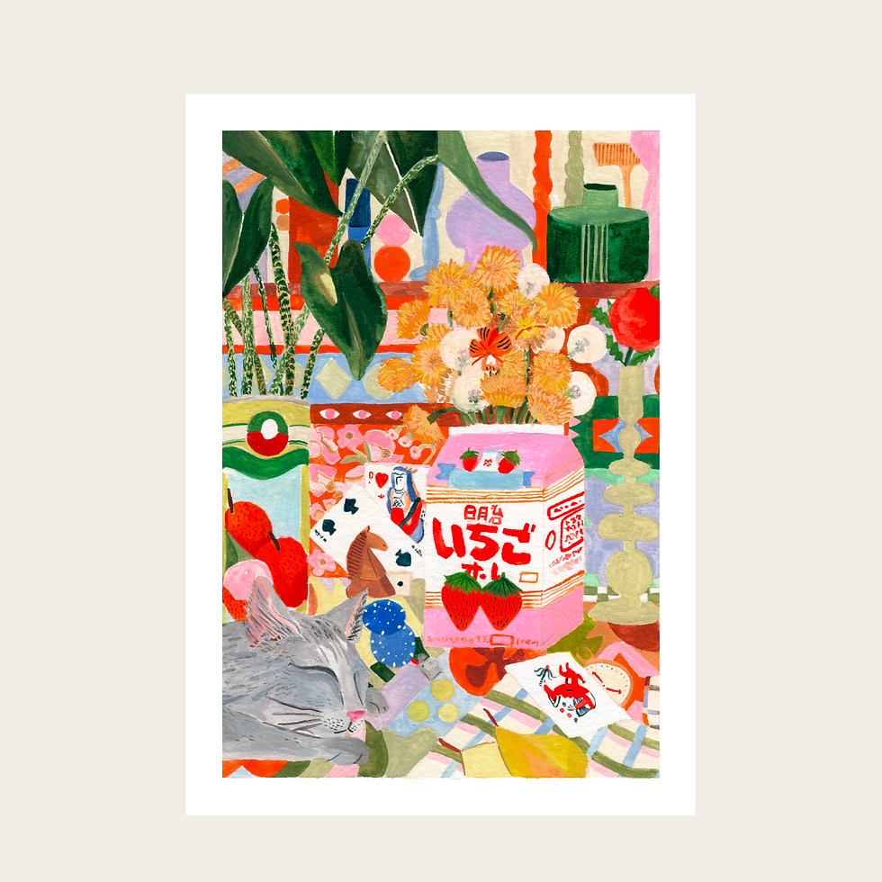 I love the imperfection and texture of gouache, which allows me to create a naive, joyful, and colorful universe, teeming with details.